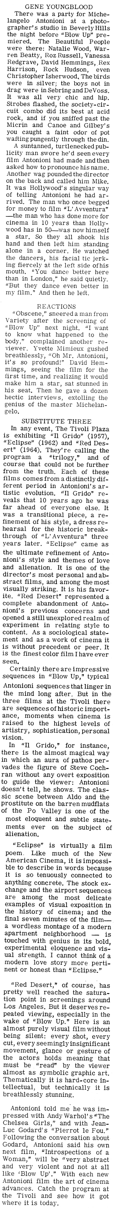 1st September 1967 ‘’Blow Up’ Slick But Trilogy Antonioni’s Gem’ – Gene Youngblood – LA Free Press p22 – article December 31, 2021 Return to: ‘Blow Up’ Slick But Trilogy Antonioni’s Gem – Gene-Youngblood – LA Free PressFull resolution (400 × 4253) Image navigation Previous Image