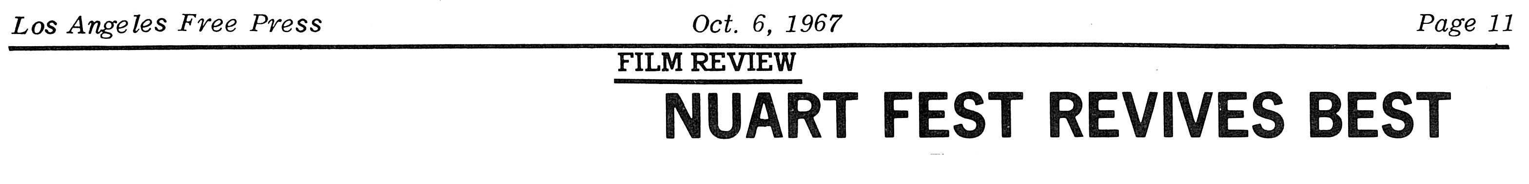 6th October 1967 ‘Nu Art fest Revives Best’ – Gene Youngblood – LA Free Press p11 – header August 9, 2022 Return to: ‘NuArt Fest Revives Best’ – Gene Youngblood – LA Free PressFull resolution (3136 × 379) Image navigation Previous Image Next Image